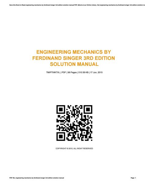 Reading Online ENGINEERING MECHANICS SINGER SOLUTION MANUAL Hardcover